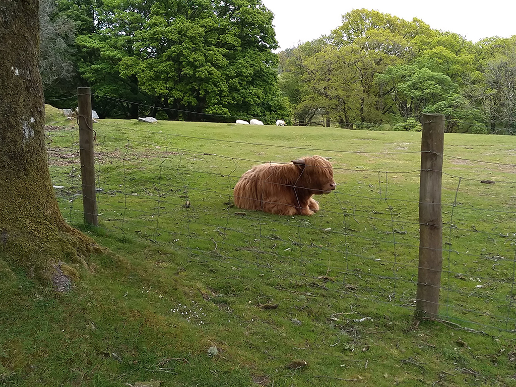 As we walked the ground gently rose as we make our way up onto the moor. Even here, there were cows grazing and resting in fenced off fields. In Britain, the concept of conservation is a bit different than here in the States. Here, the usual focus of environmental conservation revolves around preservation or the return of the landscape to some idealized natural state. In Britain, the majority of conservation efforts involve preservation of rural landscapes, such as farms, villages, and grazing lands.
