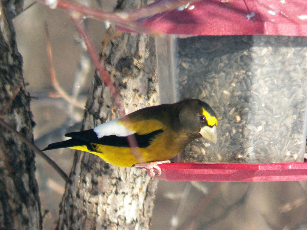 I managed to get good looks at both Pine and Evening Grosbeaks. I’ve seen Evening Grosbeaks before, but Pine Grosbeaks are a life bird for me. They are very photogenic, but my camera continued to have issues, so the Pine Grosbeak photos did not properly write to my SD card. Here’s a handsome Evening Grosbeak, though.