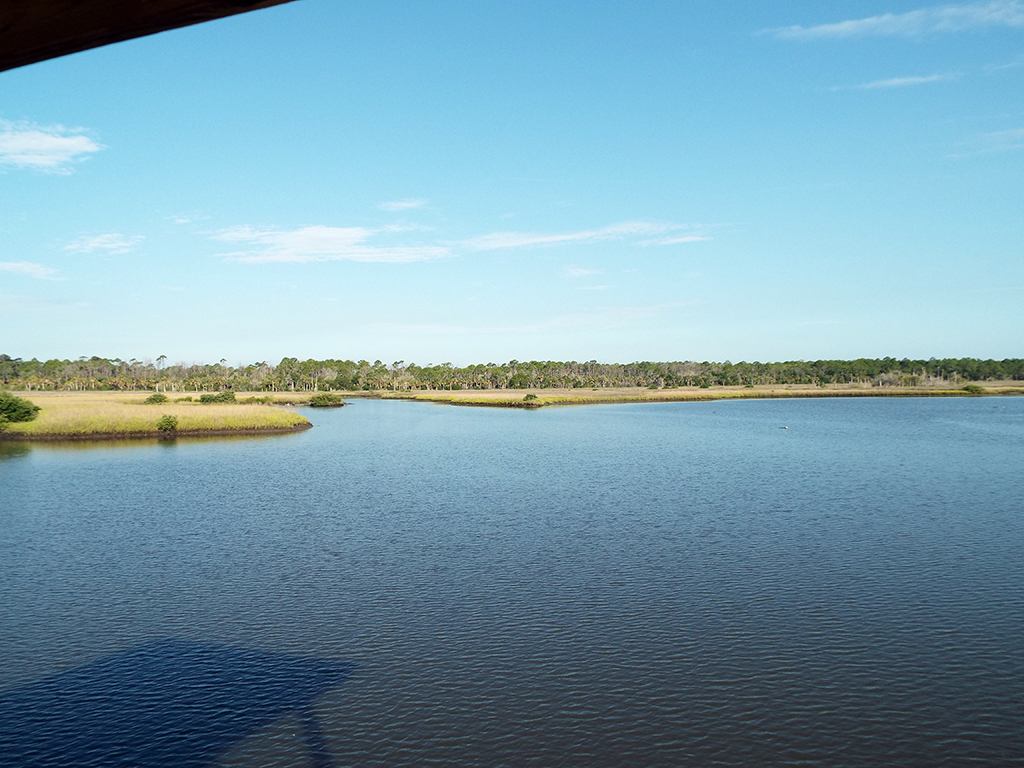 The marsh is beautiful and the stretch of water the boardwalk and pavilions overlook is expansive.