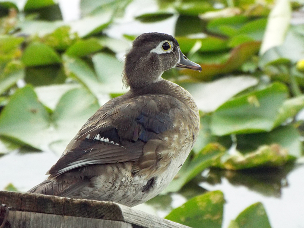 Lake Mirror (as well as Lake Morton) also have a number of Wood Ducks. The first ones we noticed were immature males. They were just getting their facial markings, but had not developed crests and their coloring was still subdued.