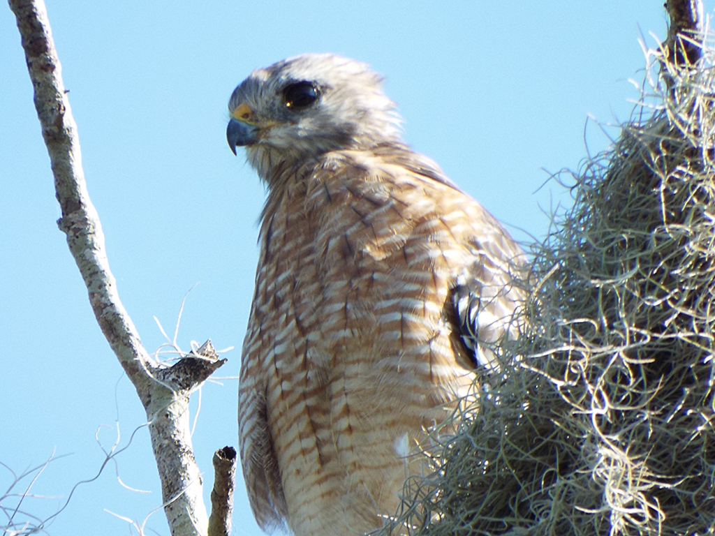 When there are small birds concentrated in an area, you can bet small raptors aren’t far away. This Cooper’s Hawk was trying to hide from mobbing Blue Jays.