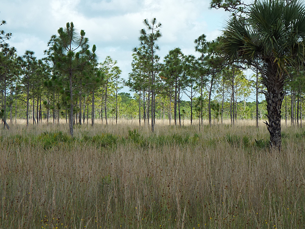 The park has been doing prescribed burns since last year, and huge sections seem to really be benefiting. One problem many parks have, even after prescribed burns, is the overabundance of palmetto scrub. Many species, including the Bachman’s Sparrows, prefer expanses of Wire Grass and other herbaceous cover that the Palmetto crowds out. You can tell from the opening photo, above, that the grasses seem to be doing well in the burned areas, and the prevalence of the sparrows seems to support that notion.