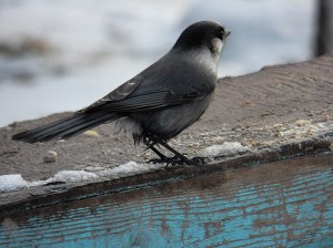 While waiting for our turn to ride a sled, I noticed several Gray Jays flying nearby from tree to tree. Some of Dave’s dog handlers were feeding them out of their hands. It was reminiscent of some Florida Scrub Jays.