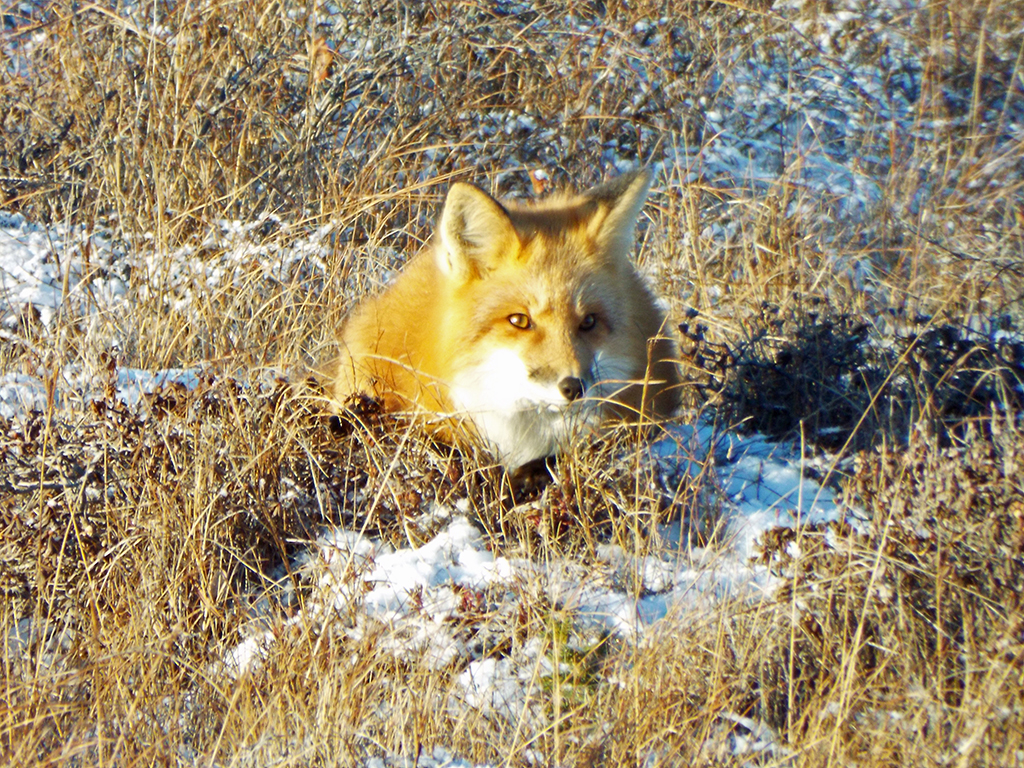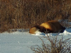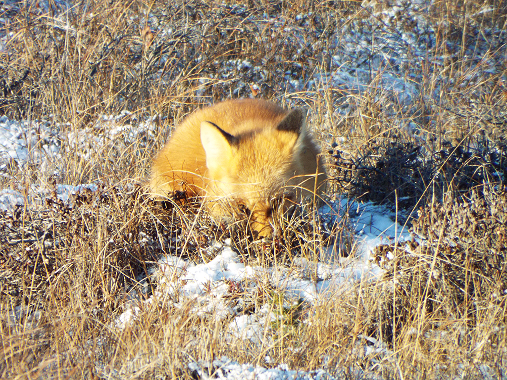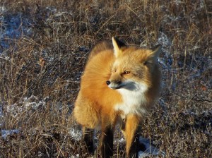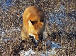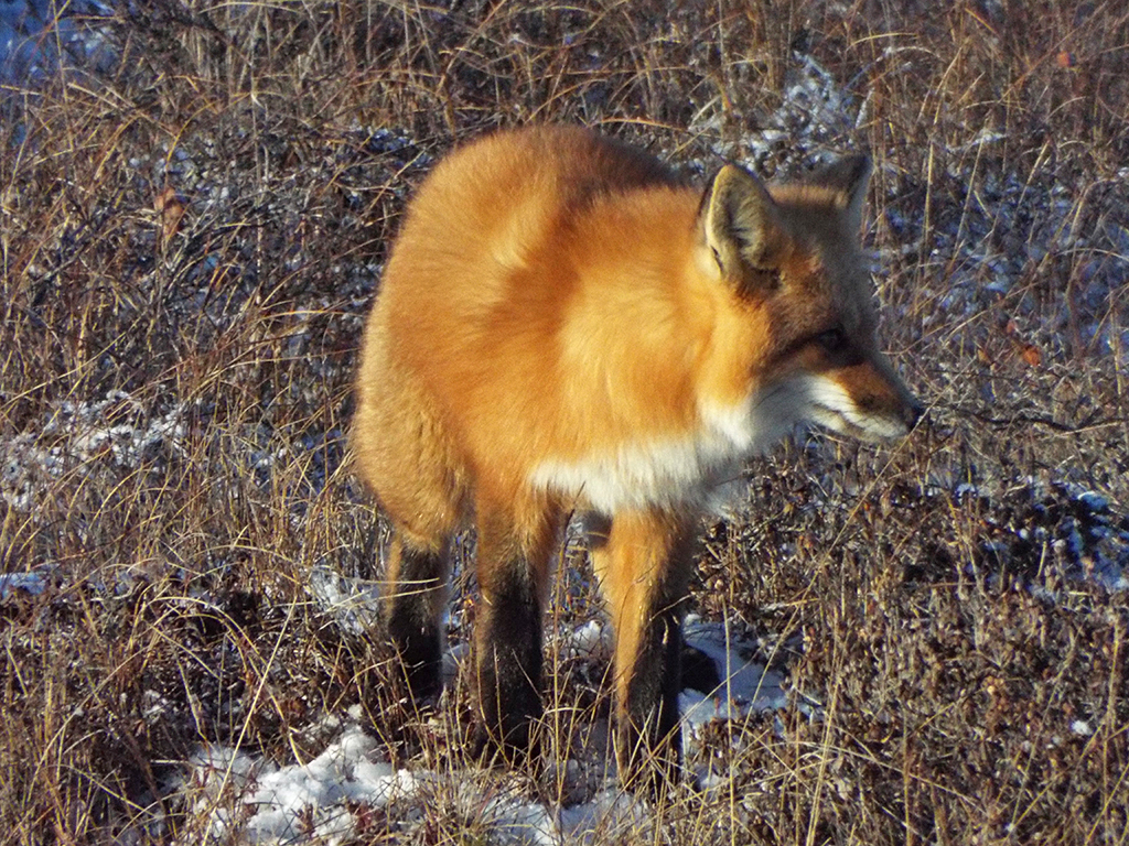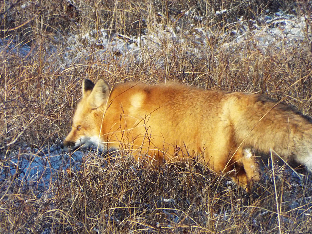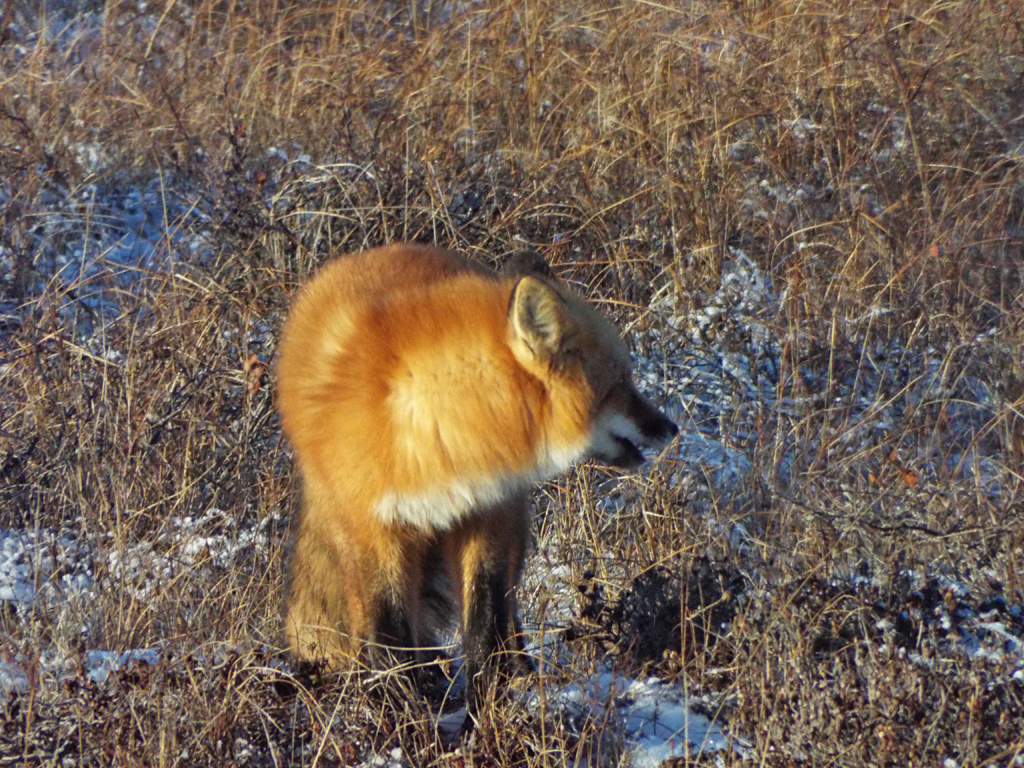 Another phenomenal encounter we had in Churchill was one late afternoon as we were coming back from Cape Merry and points north of town. We saw a vehicle stopped along the side of the road and quickly pulled over to see what the action was. There was a Red Fox a few dozen yards from the roadside, apparently eating its dinner!