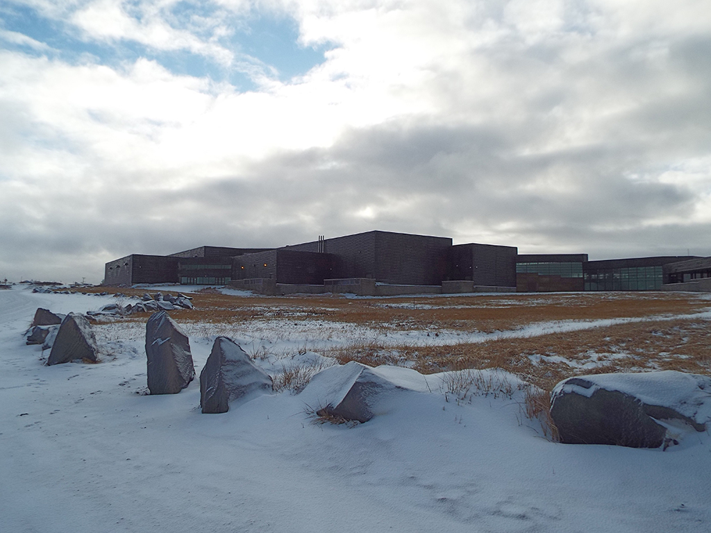On the north end of town, overlooking Hudson Bay, is the Town Complex. This huge building houses the heath clinic, school, a pool, skating rink, playground and other community spaces. The Canadian Government built it for the town to serve as a safe place to learn and play. It’s especially important because winter temperatures can drop to under -40°C (same number for °F)