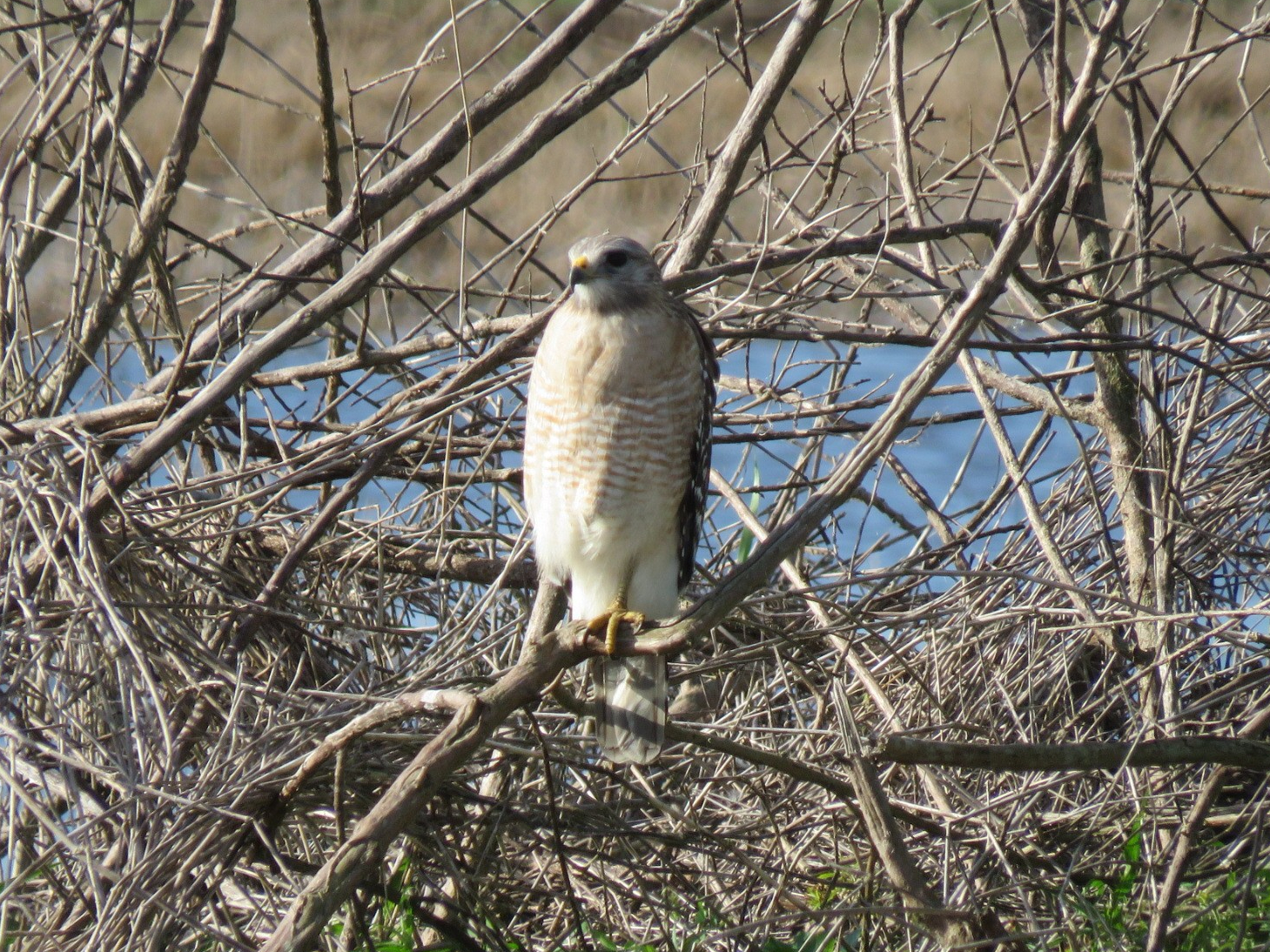 I had a fun excursion with my friends Sarah and Bella, with Sarah’s father and Bella’s sister. We drove down to the Moccasin Island Tract [map] and walked to the Bald Eagle’s nest (which was unoccupied), and got some good looks at Eastern Meadowlarks, a couple of Loggerhead Shrikes and some Black-necked Stilts that were nesting in the still-flooded grass, north of the parking area.