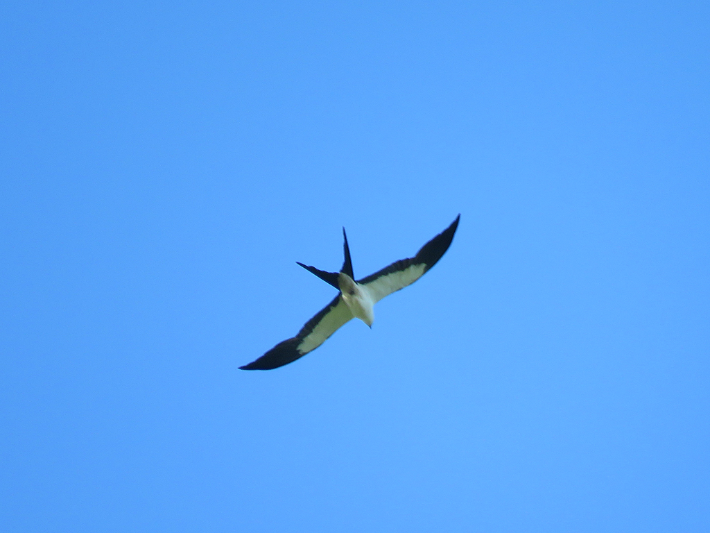 As we made our way back to the car, we had an overflight of about a dozen or so Swallow-tailed Kites – the most I’ve ever seen at once in that area. They were sharing the airspace with a very different bird. Just one of many hazards our birds have to navigate every day.