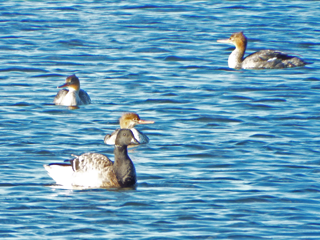 In fact, we had just two identifiable ducks (a male and a female Hooded Merganser) and distant looks at “probably Mottled Ducks, maybe”, and that was it! But it was a wonderfully birdy day, nonetheless! The morning air was a little crisp, but when the sun finally came out, it warmed nicely into a gorgeous day.