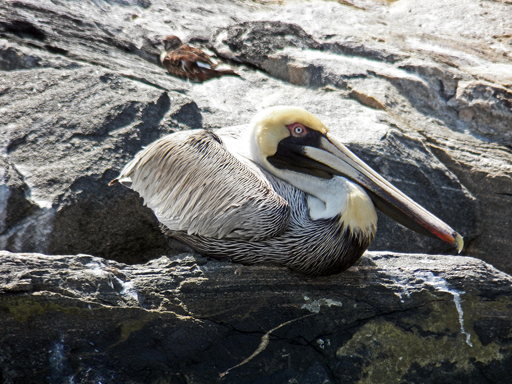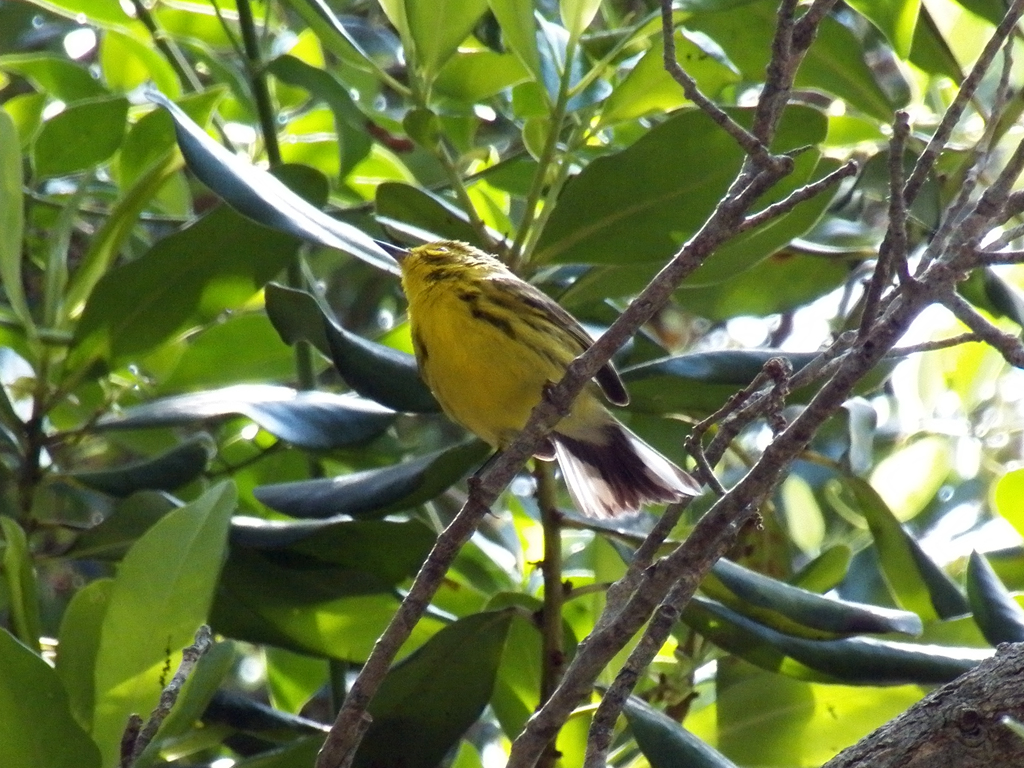 Some off-the-beaten-path birding was in the offing, too. Having heard reports of a Yellow-billed Cuckoo in the residential areas near Turkey Creek, Camille and I took a quick look into an area north of the park in hopes of seeing it. We struck out on the cuckoo, but wound up seeing a small mixed flock of warblers that included Chestnut-sided, Magnolia, and Yellow-throated Warblers.