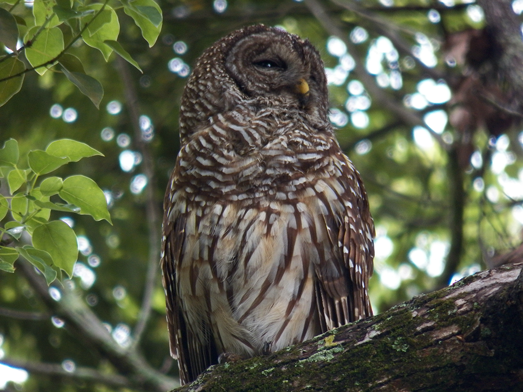 We eventually caught up to the larger group of birders, and then we all made our way back to the Barred Owl, which was sitting in the same place, though looking somewhat sleepy.