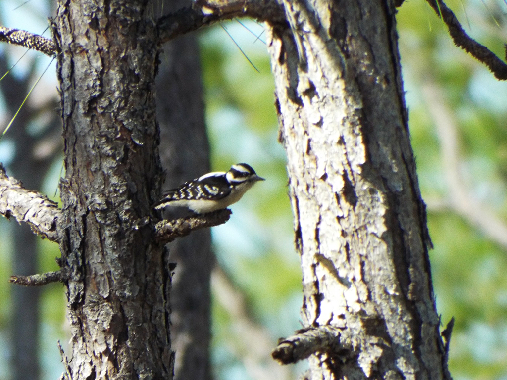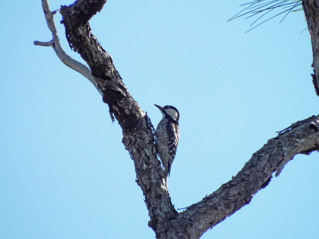 In addition to the RCWs, the park had numerous Red-bellied Woodpeckers, a few Downy Woodpeckers and, what is becoming increasingly rare, a Hairy Woodpecker. The reasons for the Hairy Woodpeckers’ decline isn’t exactly known. Although almost identical in markings to the Down Woodpecker, the Hairy is about the size of the Red-bellied. It’s possible Red-bellied Woodpeckers (as well as European Starlings and House Sparrows) are out-competing Hairy Woodpeckers for nest sites, but there could be other factors, too.