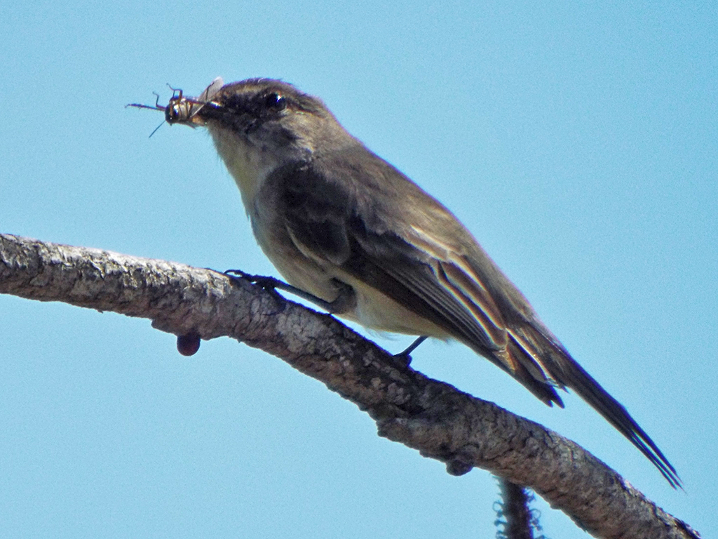 I had unsuccessfully tried to get some photos of perfectly posed Eastern Phoebes, just to have them dart off as I depressed the shutter. Finally, near the trailhead as I was exiting the trail, I managed to get quite close to a phoebe that was enjoying a bit of lunch.
