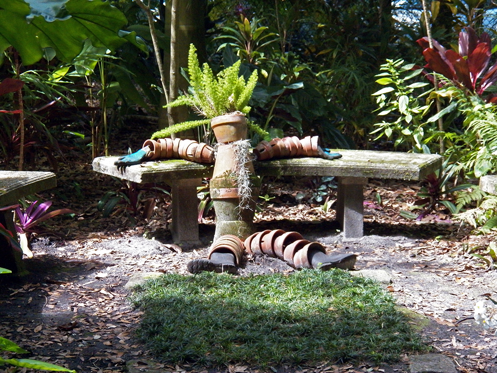 There were a few more whimsical garden areas, too. This “pot head” was definitely a work of art, with some butterflies nearby and Blue-gray Gnatcatchers singing in the trees above.